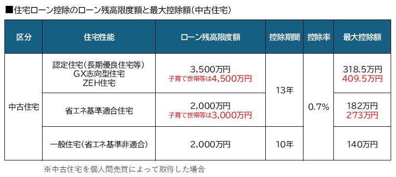 また控除期間が10年から13年に延長されたことで、最大控除額は409.5万円となり、GX志向型住宅・ZEH水準住宅・省エネ基準適合住宅で、新築住宅と同額の優遇が受けられるようになります。