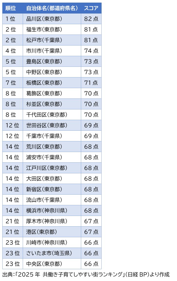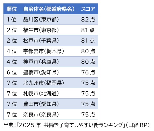 1-1. 2025年「共働き子育てしやすい街ランキング」結果