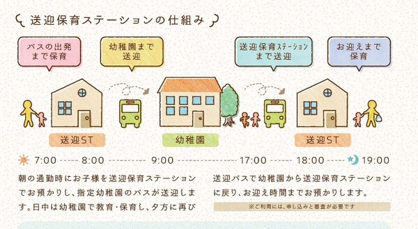 例えば、松戸市、流山市、市川市などで導入されている「駅前送迎ステーション」は、毎日の送り迎えの時間を削減できる上、家から離れた保育園にも登園できるので、保育園の選択肢が大きく広がります。