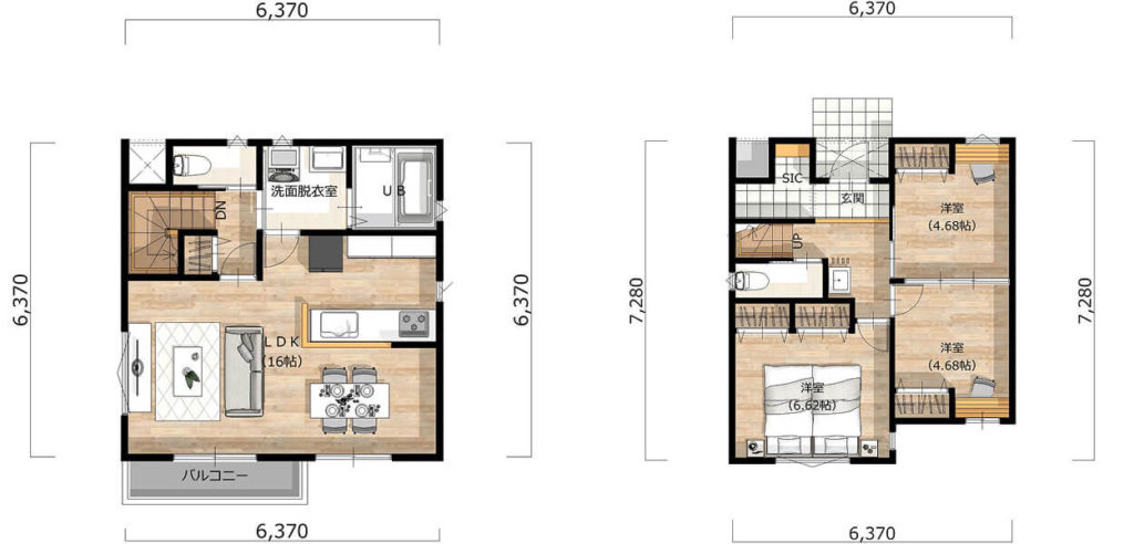 コンパクトな住まいを広く使うポイントは「廊下を少なくする」ことです。一般的に廊下の幅は約91cmなので、1.8mの廊下は約1畳分の面積に相当します。玄関ホールから直接リビングにつながる間取りや、2階の階段ホールから最小限の廊下で個室に入れる間取りなどを検討してみましょう。