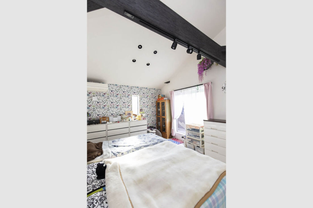 2階リビングと合わせて検討したいのが、屋根の勾配に沿って天井を貼る「勾配天井」です。天井が高い分、広く開放感のある空間になります。また、天井が高くなったスペースにロフトを設置すれば、隠れ家感のある趣味スペースや収納としても活用することもできます。