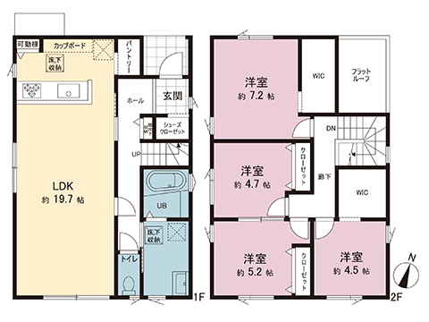 全居室収納、床下収納、WIC付。