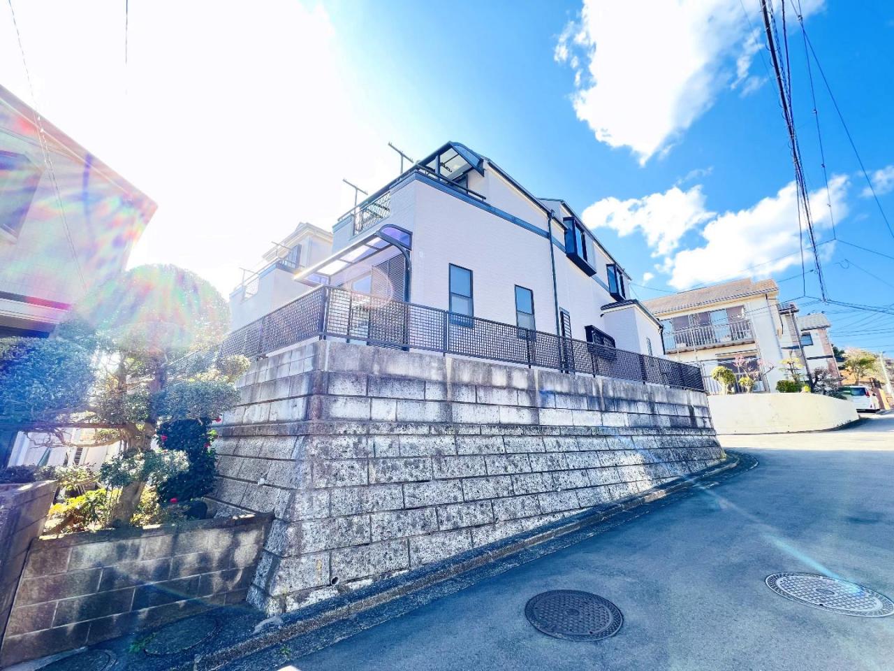 角地、緑豊かな住宅地、高台に立地です。
