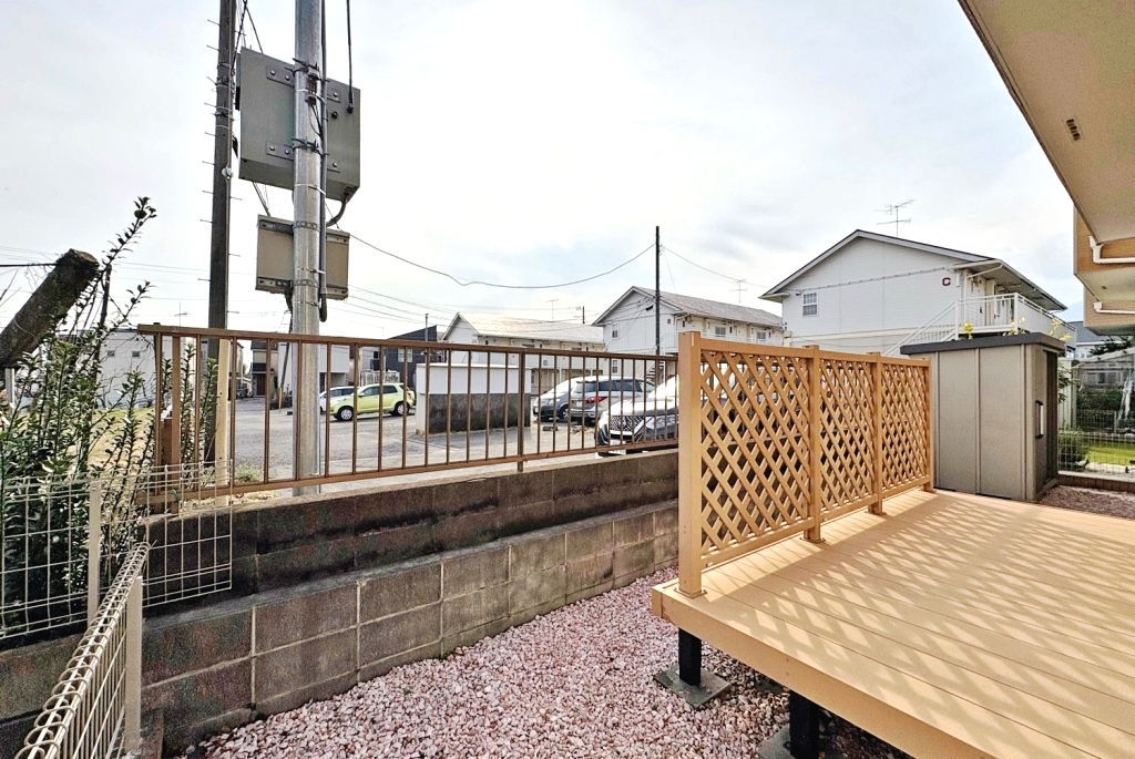 全室2面採光、通風良好、バルコニー、南面バルコニー、ウッドデッキ、庭、南庭です。