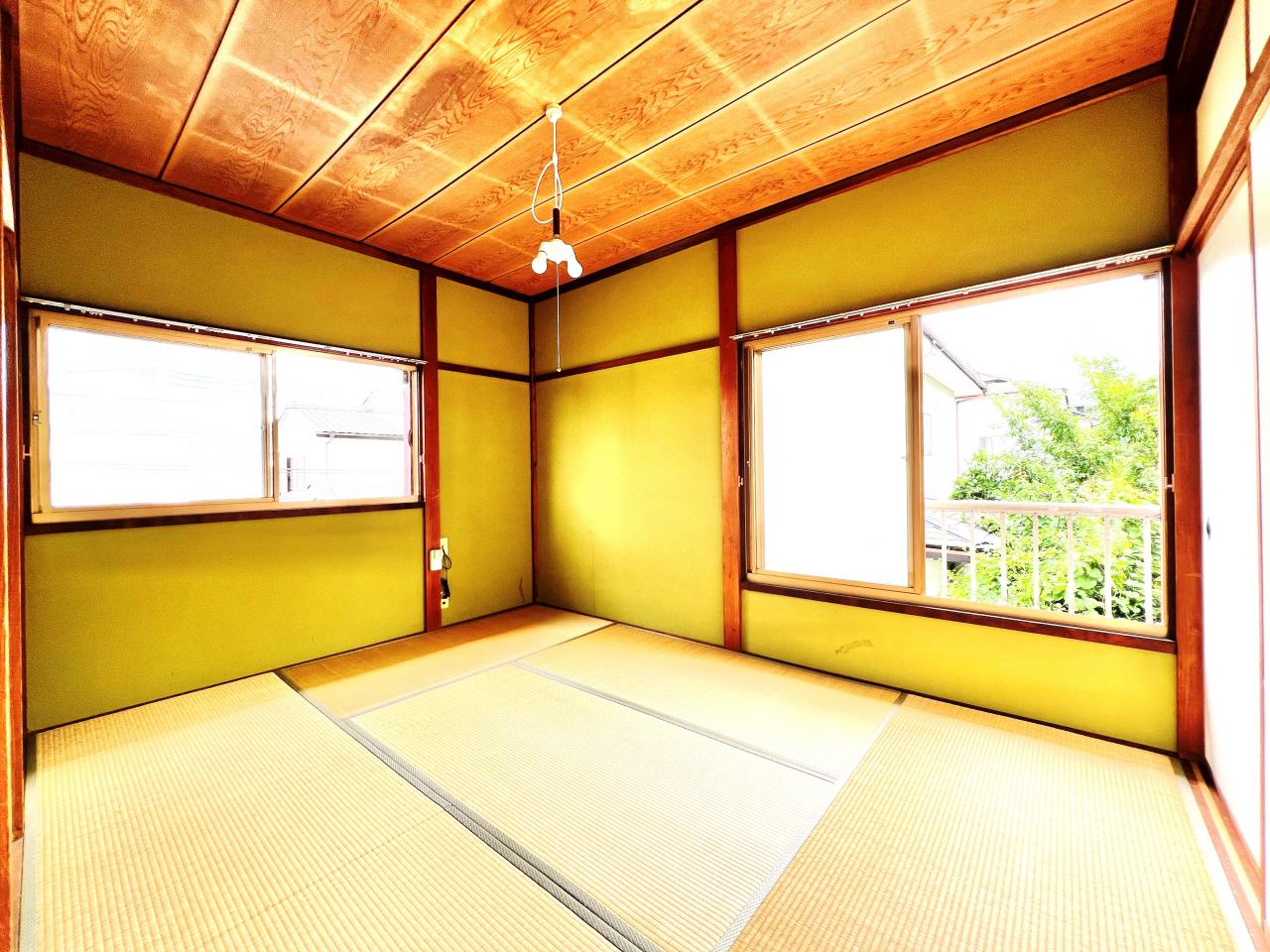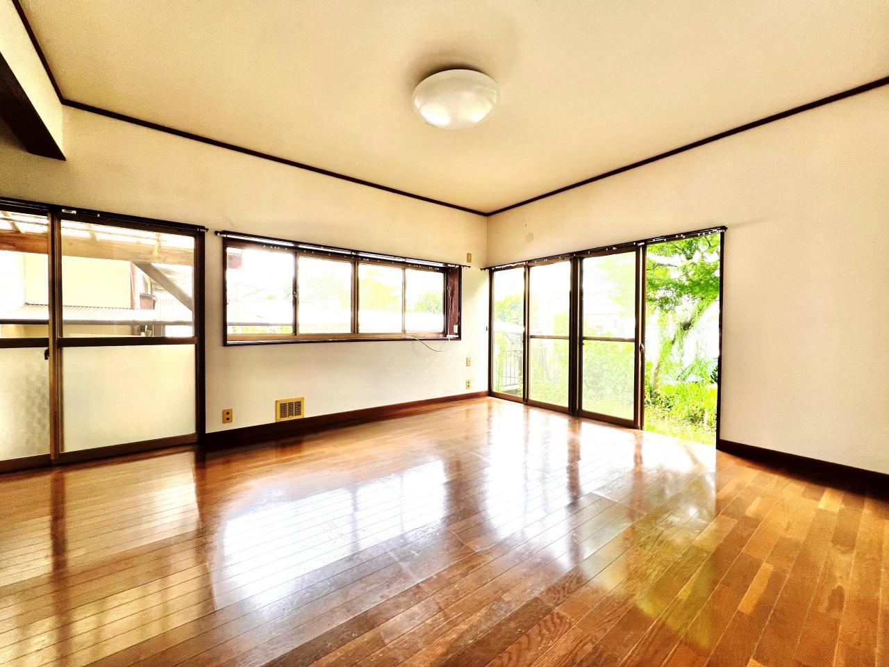 南西向き、全室2面採光、通風良好、庭です。