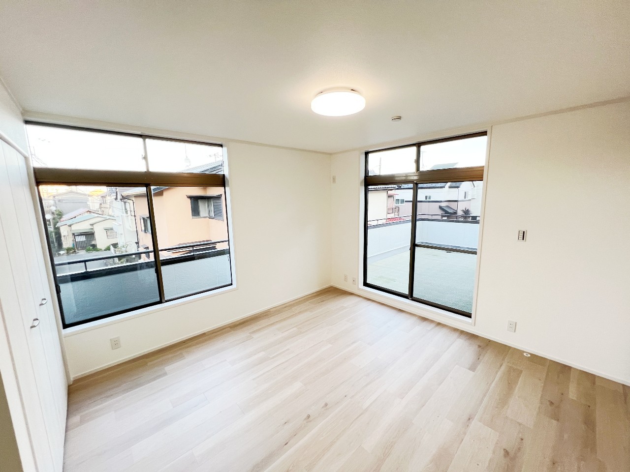東南向き、全室2面採光、ルーフバルコニー、南庭です。