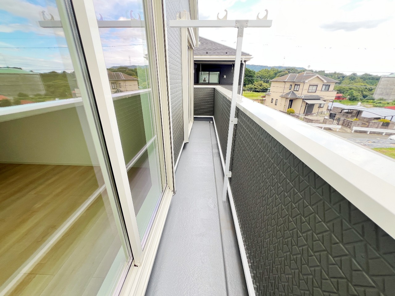 南向き、全室2面採光、通風良好、バルコニー、庭です。