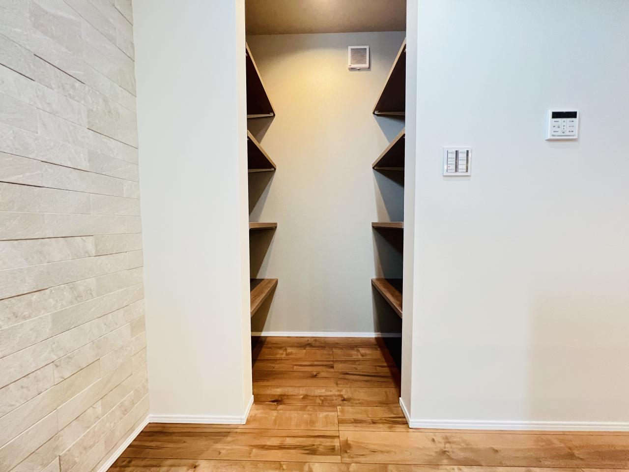 パントリー(食器・食品の収納庫)、食器洗乾燥機付で便利です。