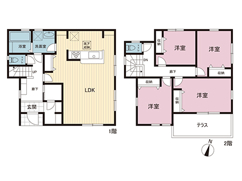 全居室収納、床下収納、シューズインクローク付でスッキリ暮らせます。