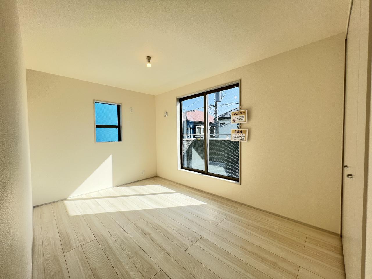 2面採光、バルコニー、庭付きです。