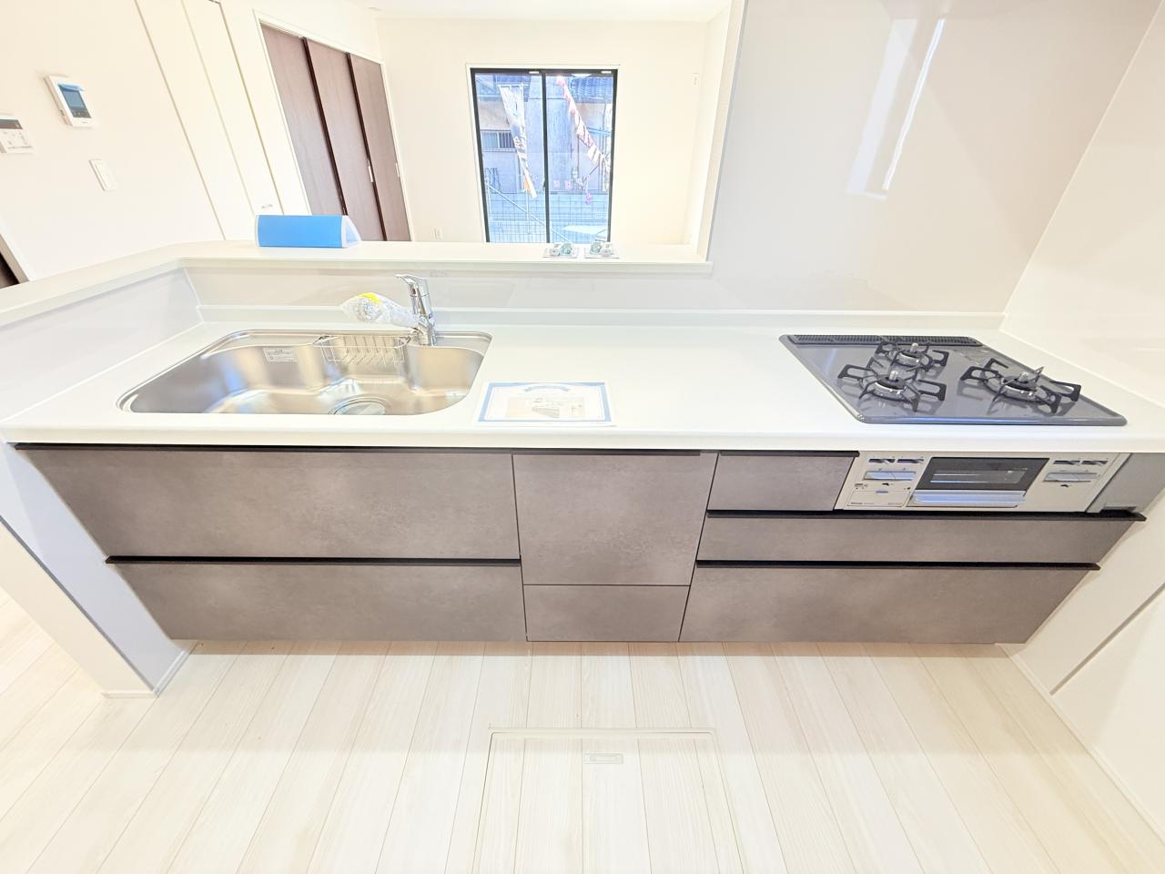 カウンターキッチンで使いやすいです。LDK15畳以上。