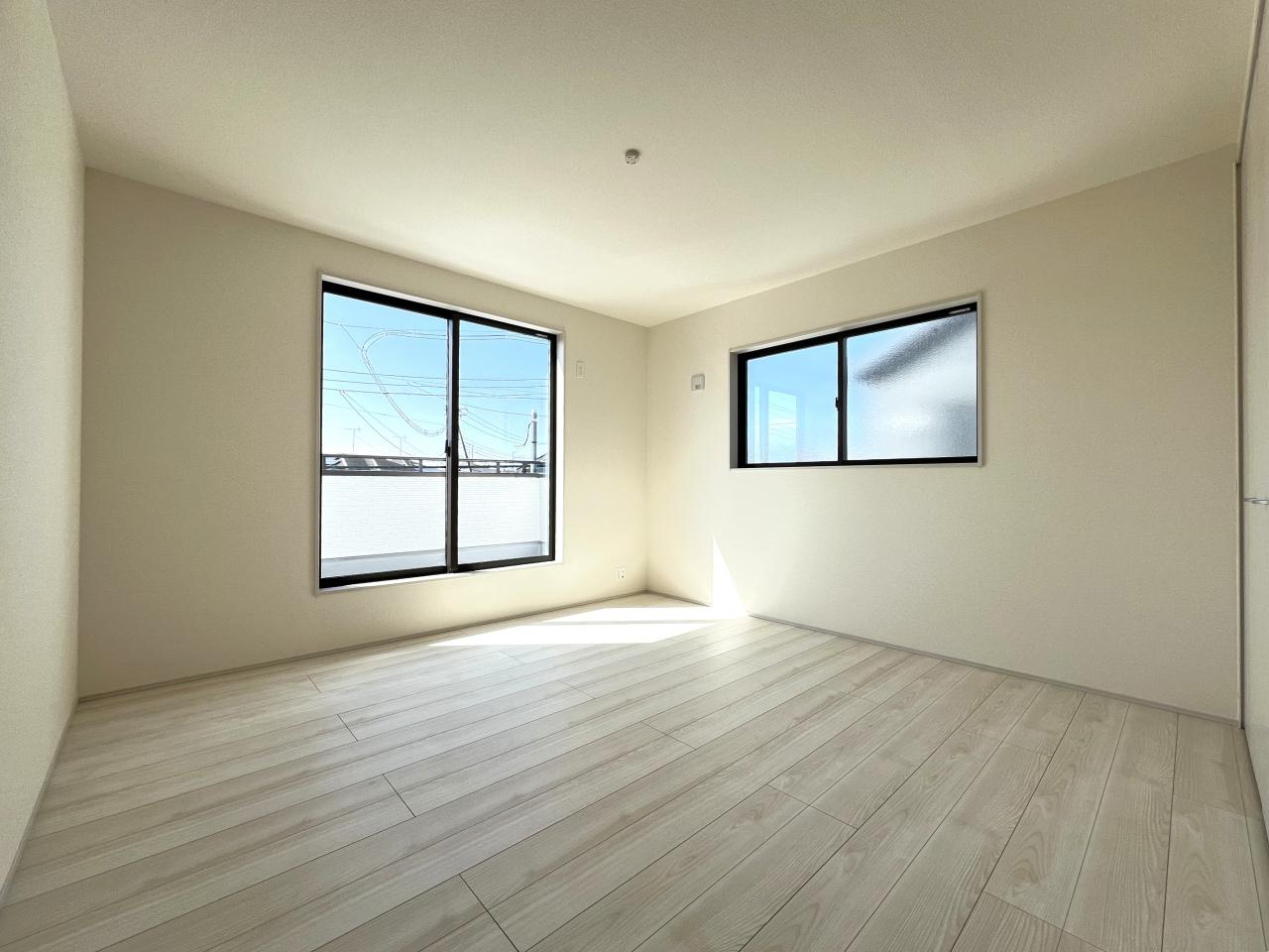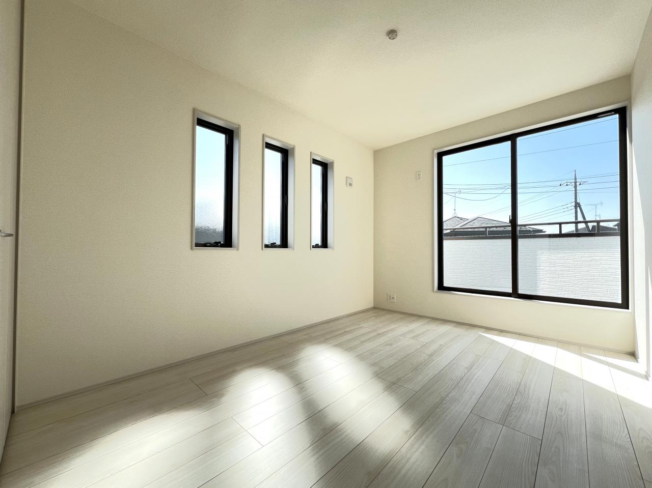 南西向き、全室2面採光、南面バルコニー付です。
