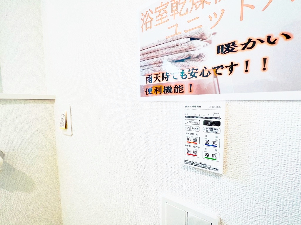 浴室乾燥機、浴室暖房付でバスタイムを快適に過ごせます。